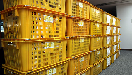 책장 안에 있는 문서 및 서류 그리고 서적들을 바구니에 표기하여 포장